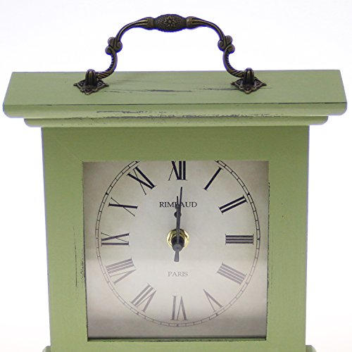 JustNile Rustic Table/Desk Clock with Handle - Vintage Wooden Green