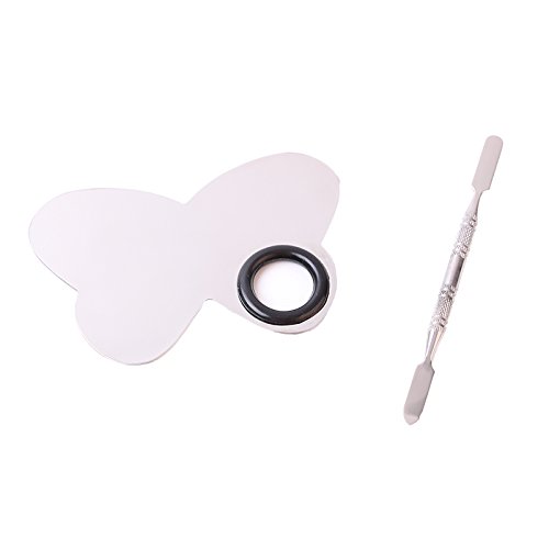 -. Feature : Pro Makeup Art Palette plus De-potting Spatula Knife Butterfly Stainless Steel Cosmetics Pigment Mixing Palette Backstage / Palette Size: 10.5 x 7 CM / Spatula Size: 11.8 CM/Length ; 0.7 CM/Diameter / Material: Stainless Steel / Packing List: 1 X Butterfly Palette plus Spatula