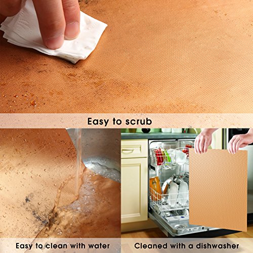 ❖ HASSLE FREE CLEANING: Save your precious time and energy with this non stick and dishwasher safe copper food mat! Cook anything you want without worrying about grease, messy oil and scrubbing. When you are done using you can simply toss it in the dishwasher and let it do the rest! Less time cleaning, more time eating goodies.