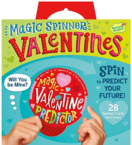 -. Binding : Toy -. Brand : Peaceable Kingdom -. EAN : 0643356057795 -. Feature : The Super Valentine Fun Pack lets your child give more than just a Valentine greeting to their friends - they get to give FUN! / Pack includes 28 cleverly designed cards with real envelopes - enough for most school Valentine exchanges / Valentine cards feature two styles of fun spinners that let friends spin the dial to predict their future / Think of a yes or no question and spin to see how the future will unfold! / For ages 5 years and older; Peaceable Kingdom packaging is all designed to be frustration free - naturally! -. Genre : Party -. Label : Peaceable Kingdom -. Manufacturer : Peaceable Kingdom -. MPN : VPS53 -. PackageQuantity : 1 -. PartNumber : VPS53 -. ProductGroup : Toy -. ProductTypeName : TOYS_AND_GAMES -. Publisher : Peaceable Kingdom -. Studio : Peaceable Kingdom -. Title : Peaceable Kingdom Magic Spinner Super Valentines Card Pack -. UPC : 643356057795