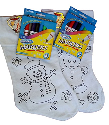 2 Color Your Stockings Penguins 2 craft kits bundle, 6 items: 2 penguins stocking, 2 packs washable markers, 2 craft kits