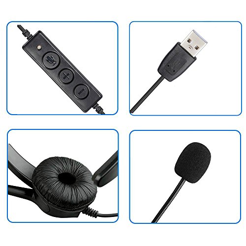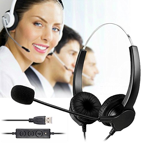 BizoeRade USB Plug Corded Headphone Call Center Comfort Noise Cancelling Headset With Adjustable Mic, Mute Volume Control for Calls on Laptops PCs Computers - [Binaural]