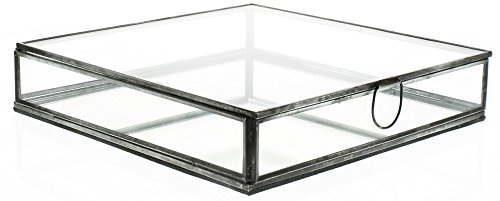 -. Feature : Large glass box . / Natural zinc finish. / Clear glass construction. / Hinged lid on top. / Mirror bottom.