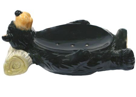 Ceramic Bear Bar Soap Holder Dish Plate Tray, 6-inch, Cabin Bathroom Decor