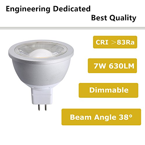 - 7W MR16 LED spotlight, High lumen COB 630LM, AC/DC12V, Imported IC with higher reliability and longer lifespan for driver. Lifespan is over 50,000 hrs. 5 years warranty. CRI>83