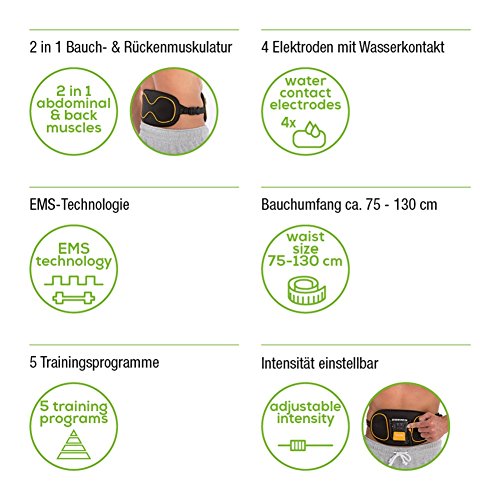 Das Reizstromgerat passt sich dank anschmiegsamer, ergonomischer Form und Verlangerungsband ideal jedem Bauchumfang zwischen 75 und 140 cm an