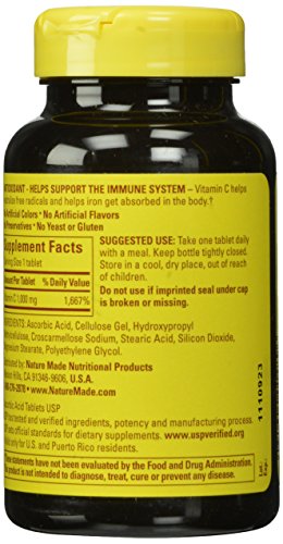 -. Binding : Health and Beauty -. Brand : Nature Made -. Label : Nature Made -. Manufacturer : Nature Made -. PackageQuantity : 1 -. ProductGroup : Health and Beauty -. ProductTypeName : HEALTH_PERSONAL_CARE -. Publisher : Nature Made -. Studio : Nature Made -. Title : Nature Made Vitamin C 1000mg