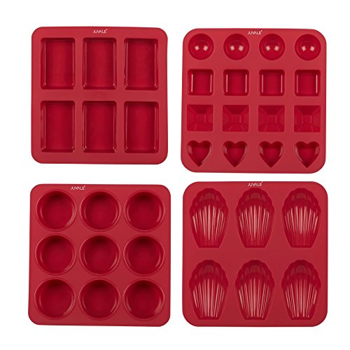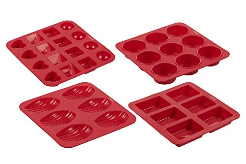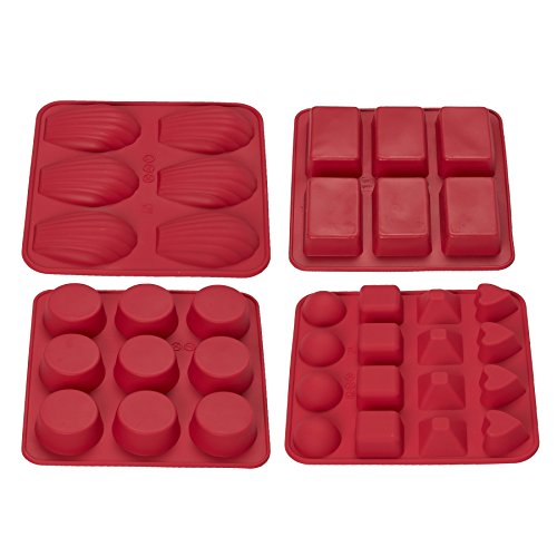 Candy Making & Baking - Nonstick Silicone Bakeware Molds Set - Use for Small Cakes, Madeleines, Cupcakes, Muffins, Chocolates, Candies, Butter, Soap, Candles, and More - Red - Set of 4