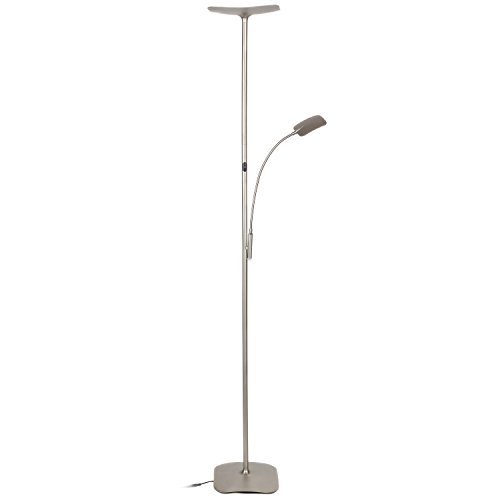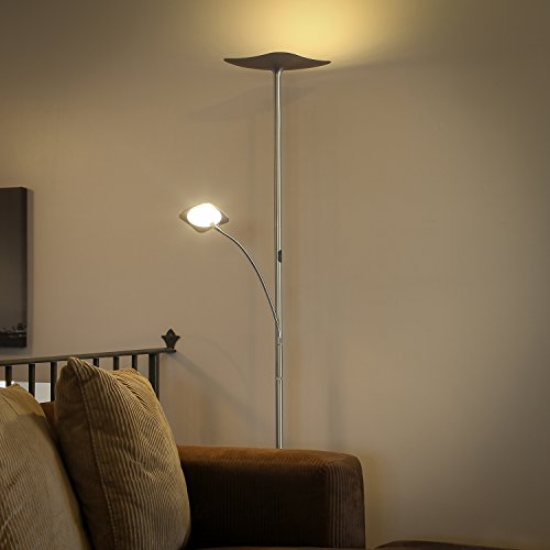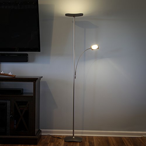 Brightech SKY Plus- LED Torchiere Floor Lamp – 33 W Energy Saving, Dimmable, Adjustable, Reading Lamp– Modern Tall Standing Pole Uplight for Light Living Room, Dorm, Bedroom or Office – Brushed Nickel
