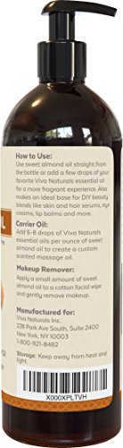 Viva Naturals Sweet Almond Oil 16 fl oz, 100% Pure and Hexane Free, Ideal for Skin and Hair