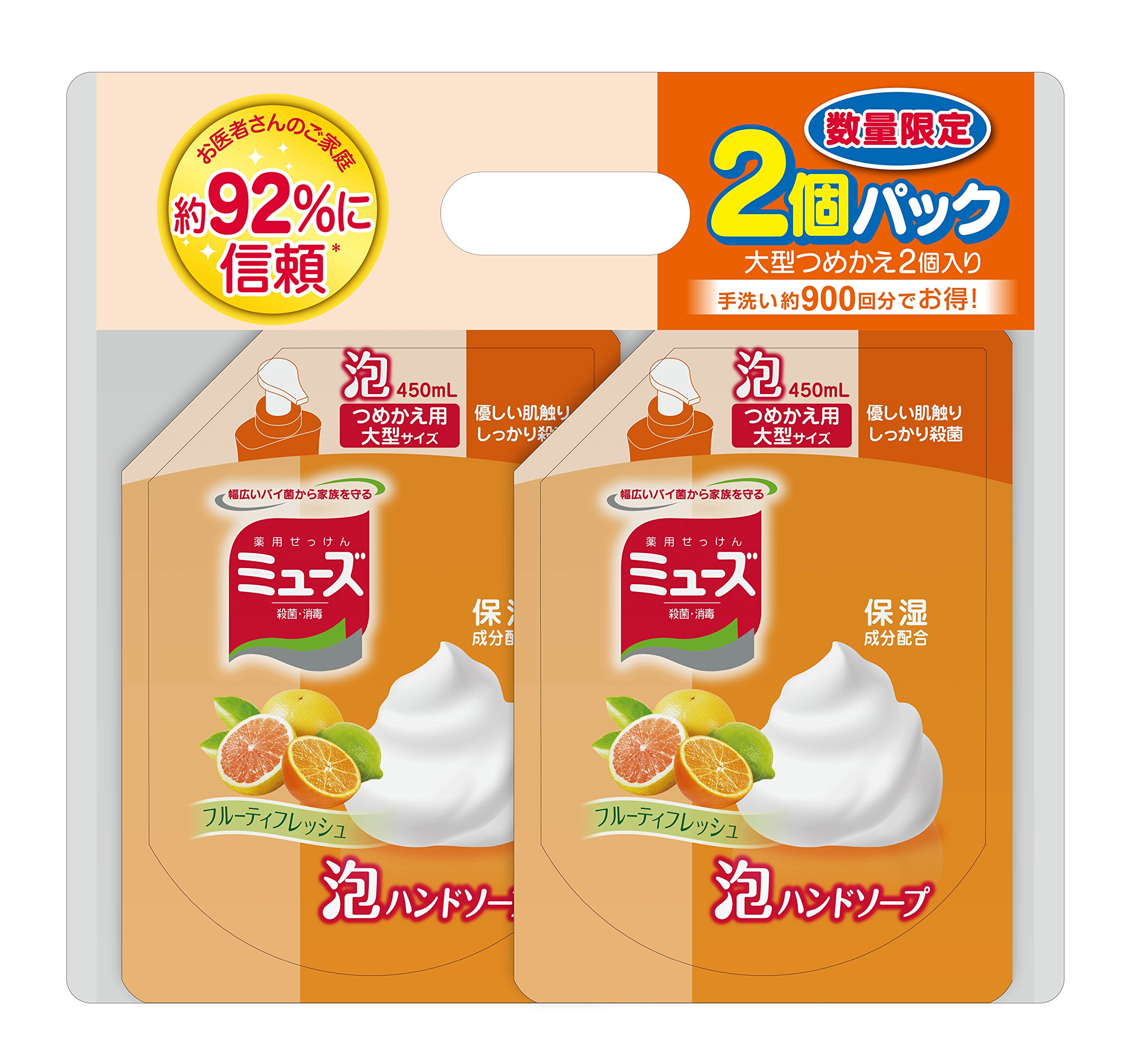 I misunderstood ... ... I misunderstood "large refill 2 pack 900 ml" as "large refill 900ml x 2" (lol) We will deliver it to the front door, He jumped (≧ ∇ ≦) and it surprised me, such a large refill pack does not exist! What? The soap which I forgot to buy somehow, the thing used was empty (^ ^ ;; Anyway, shipping was also early, it was saved by the next day ^ ^