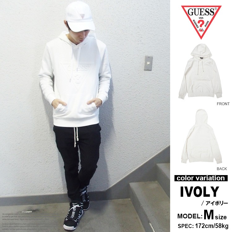 [ブランド]GUESS (ゲス)[アイテム]プルオーバー パーカー EMBOSS LOGO HOODIE[カラー]アイボリー・ブラック・グレー[素材]綿100%(裏毛)[メール便]対応不可【コメント】人気再沸騰の「GUESS(ゲス)」から、人気モデルのエンボスパーカーが入荷。ブGUESSの定番ロゴを立体感のあるエンボスで落とし込んだ、一部店舗でしか入手できない激レアのプルオーバーパーカー。標準的な厚みの柔らかな裏毛スウェット素材を使用。ワイドパンツや、スキニーパンツとも相性抜群で、自由に組み合わせが効く万能アイテムなので、コーディネートの主力になること間違いなし。※当商品は[国内正規別注品]ですので、安心してお買い求め頂けます。また当商品は取扱店が少ないため、他と差がつけれる希少なアイテムです。サイズ:S/M/L/XL着丈:64/65/67/69身幅:50/53/56/59肩幅:45/46/47/49袖丈:62/63/64/65[モデル:172cm/58kg/着用写真をご参照ください]B系ファッション ストリート系 HIPHOP ヒップホップ ダンスウェアなどのブランド正規通販ショップHIPHOP DOPEは、GUESS(ゲス)正規販売店です。
