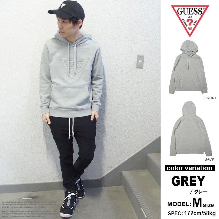 人気再沸騰の「GUESS(ゲス)」から人気モデルのエンボスパーカーが入荷。ブGUESSの定番ロゴを立体感のあるエンボスで落とし込んだ、一部店舗でしか入手できない激レアのプルオーバーパーカー。標準的な厚みの柔らかな裏毛スウェット素材を使用。ワイドパンツや、スキニーパンツとも相性抜群で、自由に組み合わせが効く万能アイテムなので、コーディネートの主力になること間違いなし。