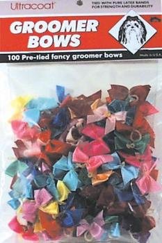 -. Feature : Fancy pre-tied groomer bow / Tied with pure latex bands for strength and durability / Includes 100 bow per pack