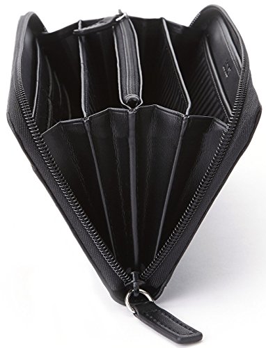 Binding : Apparel Product Description RFID (Radio Frequency Identification) tags are now being placed in US Passports, credit cards and other forms of identification. Protect your information from hackers by using a ROYCE RFID Blocking Wallet in Genuine Leather. This Genuine Leather Fan Wallet in Genuine Leather features a built in shield that blocks radio frequencies embedded in your Credit Cards and IDs. Genuine Leather exterior and interior, all lined with our beautiful striped silk. Multiple pocket interior opens just like a fan. Has 2 currency pockets one on each side. 12 credit/business card pockets. A Zippered pocket in the middle to hold your change. 3 additional compartments can be used to carry your keys, lipstick, and can fit your checkbook as well. This Wallet in Genuine Leather has a zippered closure and an extra exterior pocket. 0