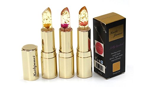 -. Feature : 1. Uniquely Gorgeous: Clear, gold-flaked jelly lipsticks, each one featuring a tiny dried flower inside. / 2. Simply Sweet: Once it is applied to lips, the clear jelly lipstick transforms into a lovely transparent pink gloss. / 3. Magical Color Change: The color may change depending on your body temperature, staying lighter if you are cool, and deeper if you are warm. / 4. Elegant Cosmetics: Each lipstick has a pleasant fruity scent and is housed in a deluxe signature red metallic tube with mirror on one side / 5. Natural Ingredients: Candelila Resin, Cocoa Butter, Plant Extract, Stearic Alcohol, Olive oil, Citric Acid, Grape Seed Oil, Lavender oil. Moisturizing Lipsticks with Lip Balm effect.