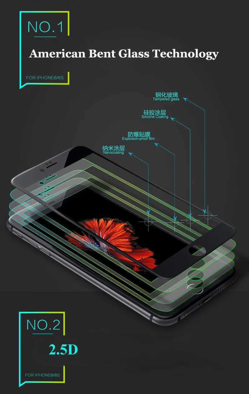 Ultra-thin Tempered Glass:Full Cover Tempered Glass For iPhone 6 6S