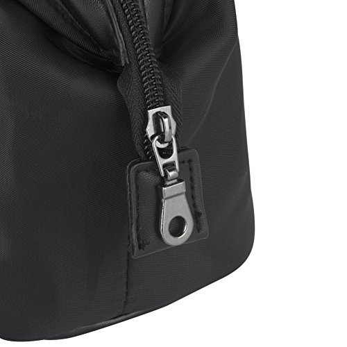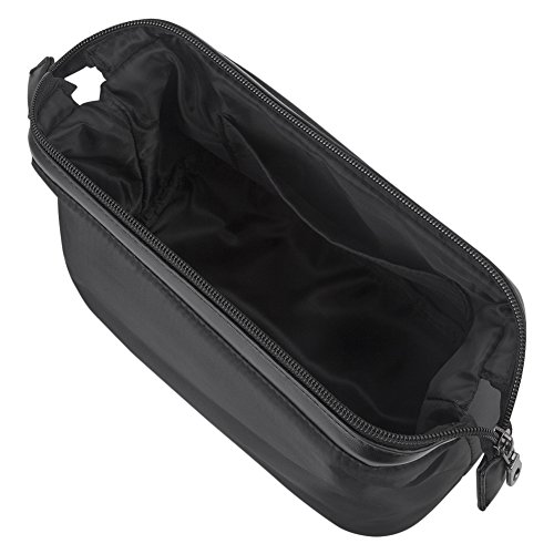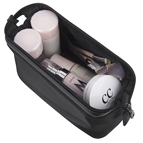 Thanks to the open design, the bag is not only in great shape but also large enough to hold loads of travel toiletry/cosmetic accessories like toothbrush, facial cleanser, shaver, skin care products and so on. There is one main pocket and a built-in side pocket for small items