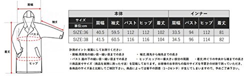 -. Feature : [生産国]: 中国 / [素材]: 本体(毛 66% ナイロン 30% アクリル 3% ポリエステル 1%)インナー(表地(毛 66% ナイロン 30% アクリル 3% ポリエステル 1%)裏地(ポリエステル 100%)ファー部分(ポリエステル 100%)) / [洗濯情報]: ドライクリーニング / SIZE:36 本体(肩幅:40.5cm 袖丈:59.5cm バスト:112cm ヒップ:112cm 着丈:102cm)インナー(肩幅:33.5cm バスト:94cm ヒップ:112cm 着丈:81cm) / SIZE:38 本体(肩幅:41.5cm 袖丈:60.5cm バスト:116cm ヒップ:116cm 着丈:104cm)インナー(肩幅:34.5cm バスト:96cm ヒップ:114cm 着丈:82cm)