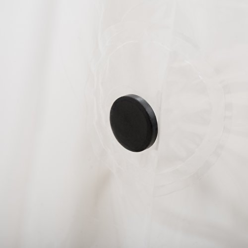MAGNET-HEMMED BOTTOM: Reducing curtain billowing, its weighted hem ensures its longevity and keeps your shower curtain in place, throughout long-term use. This shower liner is your best choice for outfitting a worry-free shower stall or bath tub.