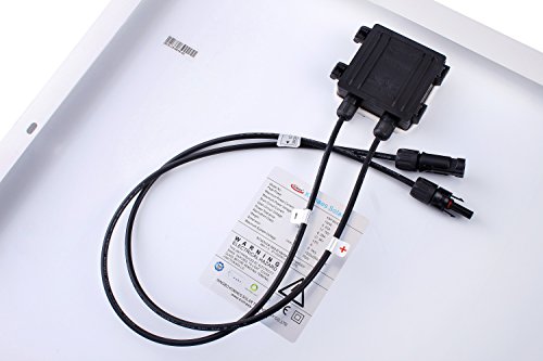 PV solar panel diodes are pre-installed in junction box and a pair of 30 inches cables with MC4 connectors comes with the panel automatically