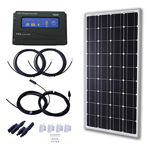 Komaes 100 Watts 12 Volts Monocrystalline Solar Starter Kit with 20A PWM Charge Controller + 20ft Tray Cable + 20ft MC4 Connectors + Mounting Z Brackets