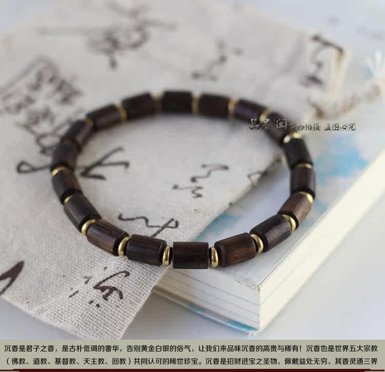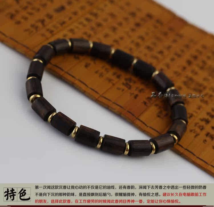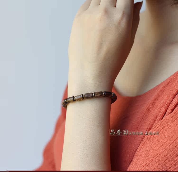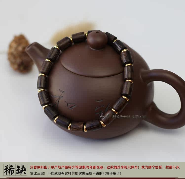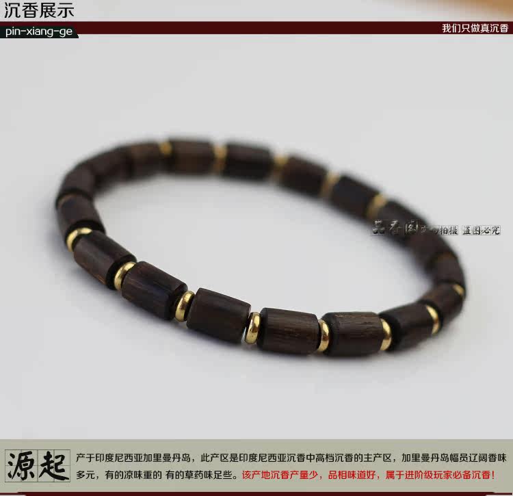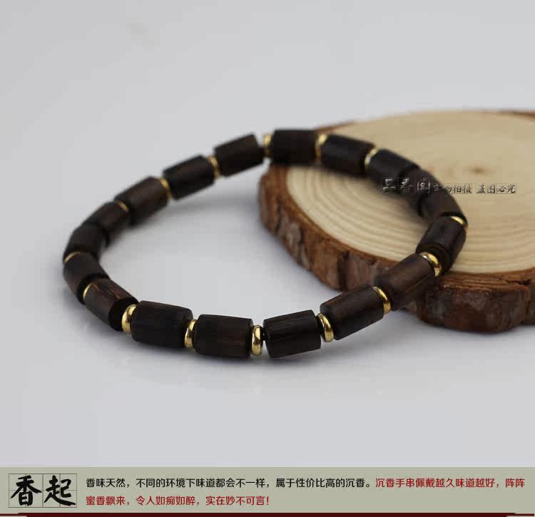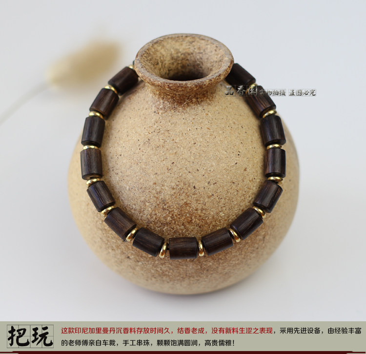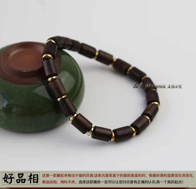 印尼加里曼丹天然沉香桶珠沉香手串单圈佛珠手链 香味细甜 野生