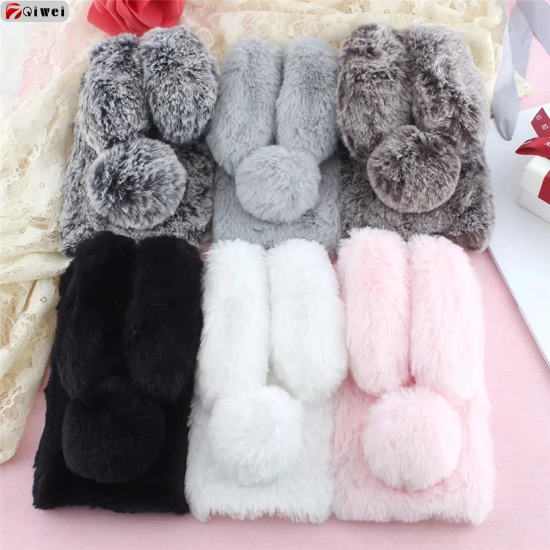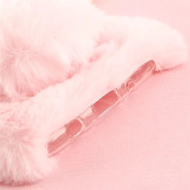 Feature 2:Plush Rabbit Ear Shape Warm Fur Soft TPU Back Cover Coque