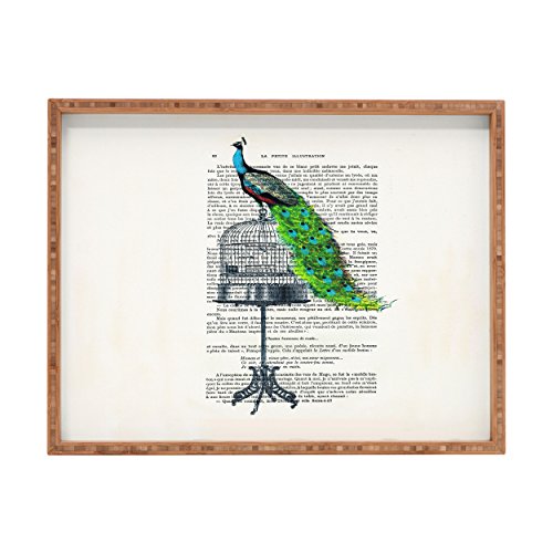 Deny Designs Coco de Paris Peacock On Birdcage Indoor/Outdoor Rectangular Tray, 17 x 22.5