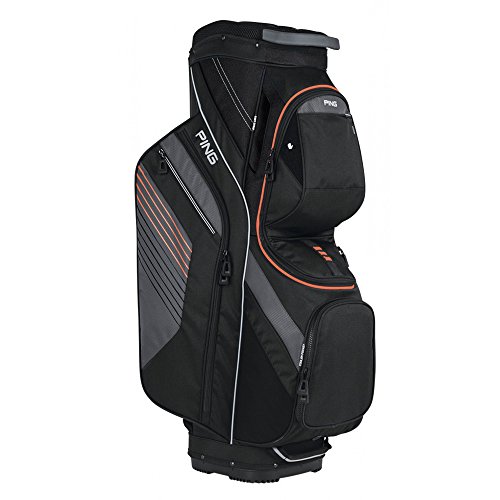 Studio : Ping Publisher : Ping Binding : Misc. Product Description The Ping Traverse Cart Bag is designed with 10 pockets and at only 6 pounds, this bag is extremely lightweight and allows you to bring everything you need for the round. The Traverse bag included 2 valuables pocket, 2 apparel pockets, large ball pocket and many others. This bag is ideal for the serious riding golfer looking for a lightweight cart bag with a lot of storage options. Ping Traverse Cart Bag 2017 features: 14-way top 10 total pockets Cart strap channel Drop down ball pocket Cooler pocket 2-velour lined valuables pocket 2 large apparel pockets Molded bottom fits securely on cart Towel/accessory ring Umbrella sleeve Rangefinder pocket Integrated lift handles Tee holders Matching rainhood included Weight: 6 Lbs 0