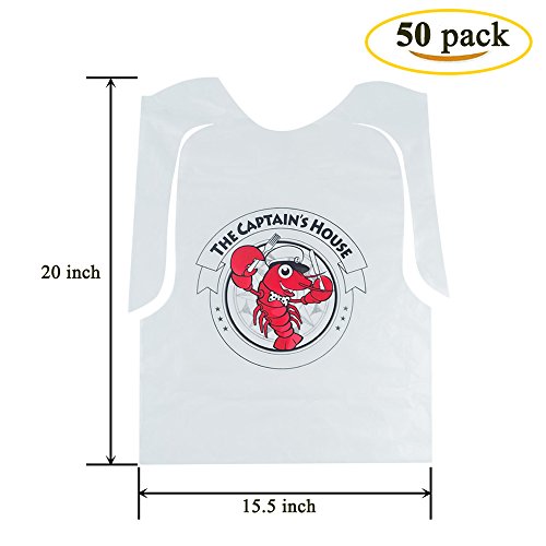 Benail 50 Pack Disposable Plastic Lobster Bibs Protect Clothes From Butter and Juice etc.