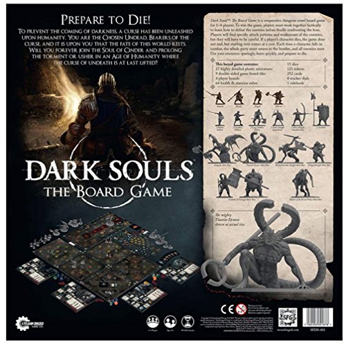 Dark Souls: The Board Game is a cooperative dungeon crawl board game for 1-4 players. To win the game, players must work together tactically to learn how to defeat enemies before finally confronting the boss. Players will find specific attack patterns and weaknesses of the enemies, but they will have to be careful. If a player's character dies, the game does not end, but starting over comes at a cost. Each time a character falls in combat, the whole party must return to the bonfire, and all enemies reset. Use your resources sparingly, learn quickly, and prepare to die.Feature