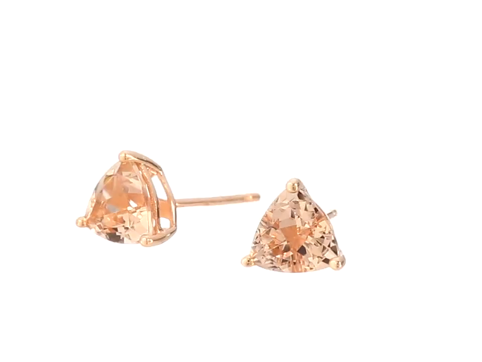 These unique 6mm triangular 1.15cctw morganite studs set in 0.74g 10k rose gold using 3 prong setting with friction post backing are perfect for adding a hint of sparkle to your look.
