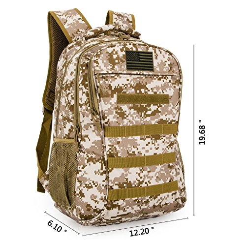 -. Binding : Misc. -. Brand : Paladineer -. Department : Unisex -. Feature : Durable Material & Gift Included: Anti-tear Polyester for long-time usage; Velcro tape for free to attach on the font zippered pocket / Large Capacity & Approximate Dimensions: Roomy enough for survival and outdoor essentials; Approximate Dimensions: 12.20"L x 6.10"W x 19.68"H; Weight: 2.24 lb / Molle Webbing & Extension Cord: Molle webbing throughout for attaching additional pouches or gear; Earphone extension cord for lengthening the original earphone cord(Note: iPhone earphone is not compatible with this extension cord) / Mesh Ventilation & Convenience Design: Mesh padded back panel for ventilation; Adjustable padded shoulder straps for comfort and convenience / Multiple Compartments & Many Pockets: One large main compartment with a 13.3 inch padded laptop sleeve, two large pouches and two small pouches for pens; One large secondary compartment; A third compartment with two pouches; One large front zippered pocket; Two side mesh pockets -. IsAutographed : 0 -. IsMemorabilia : 0 -. Label : Paladineer -. Manufacturer : Paladineer -. MPN : KXZ6836 -. PartNumber : KXZ6836 -. ProductGroup : Sports -. ProductTypeName : SPORTING_GOODS -. Publisher : Paladineer -. Studio : Paladineer -. Title : Paladineer Military Rucksacks Army Patrol Tactical Backpack Molle Assault Pack Combat Day Pack 30L