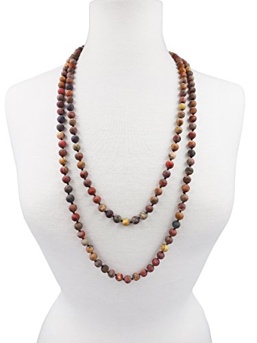 60" long multi-layer infinity endless genuine semi-precious matte finish Picasso stone chakra necklace.