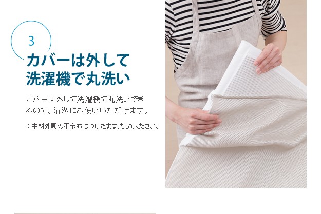 ●材質:側地・表-ポリエステル100%(ハニカムメッシュ)、側地・裏/フリース-ポリエステル100%、中材-ポリエステル100%(ソフト立体構造編物)