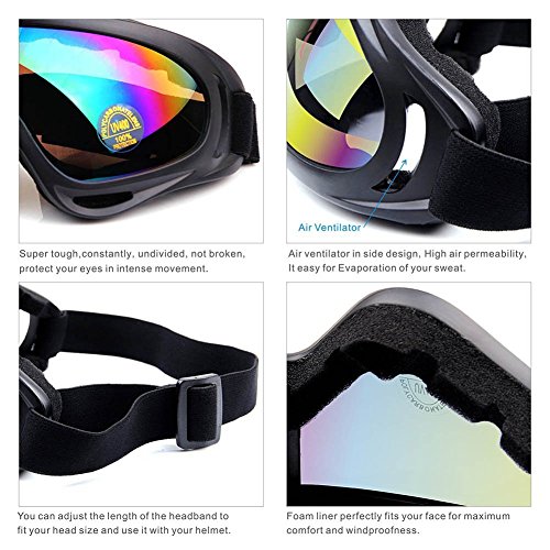 Viriber Snow Googles Windproof UV400 Motorcycle Snowmobile Ski Bicycle Riding Goggles Eyewear Sports Protective Safety Glasses (Colorful)