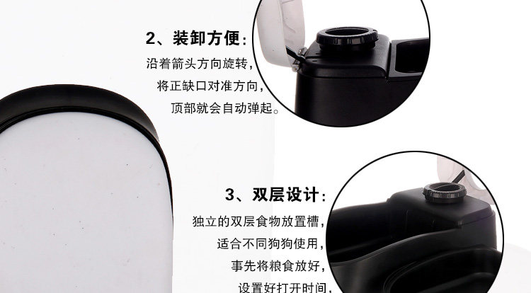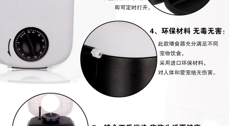 [Introduction]: This paragraph feeder can be mounted battery, adjust dotes dinner time, no longer have to worry about the owner