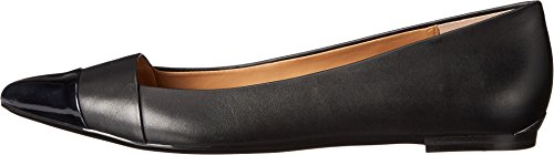 Part of the calvin klein essentials package, goldie is a pointy toe flat with metallic toe cap and gel pod insert for added comfort.