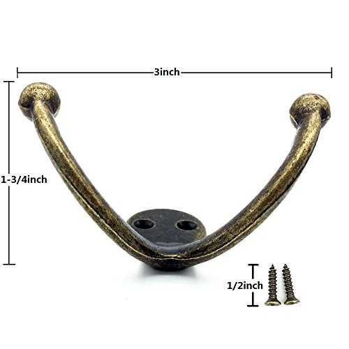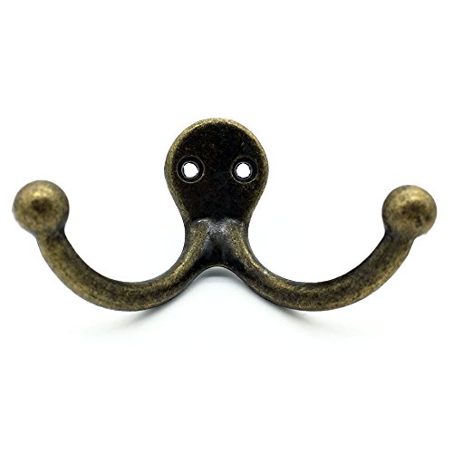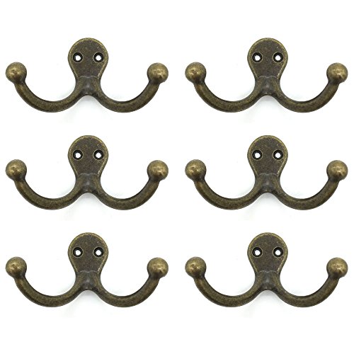 Richohome Retro Double Prong Robe Hook,Coat and Hat Hook- Pack of 6