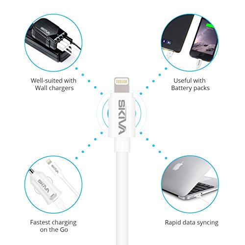 [Apple MFi Certified]: Skiva USBLink Extra Long 8-pin Lightning cable contains an authorization chip issued by Apple which communicates with any Lightning connector device to ensure 100% compatibility and no warning messages.