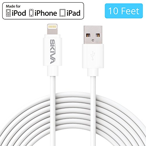 Apple MFi Certified Lightning Cable - Skiva USBLink Extra Long (10 ft / 3m) Sync and Charge 8-pin Cable for iPhone 6 6s Plus 5s 5c 5 SE, iPad Pro Air mini, iPod touch 6th 5th gen & more [Model:CB102]