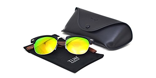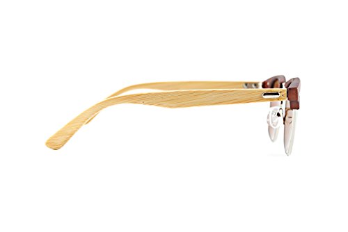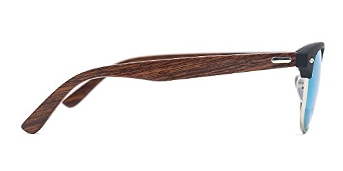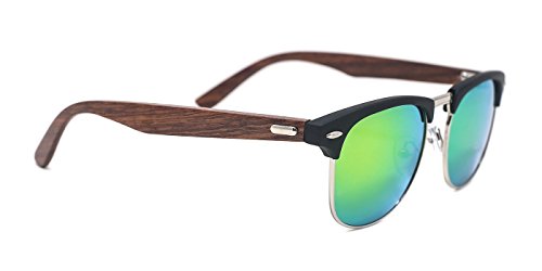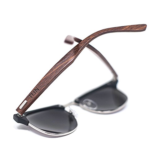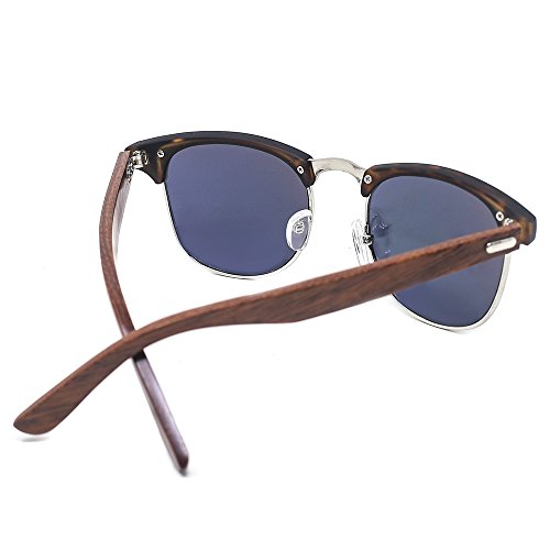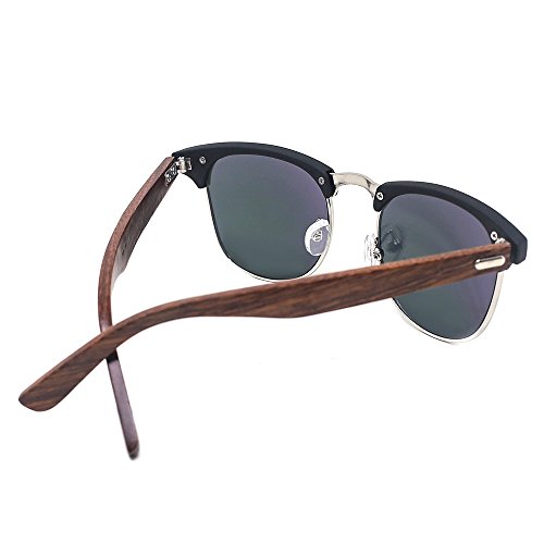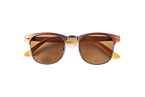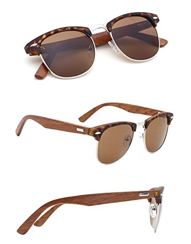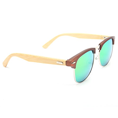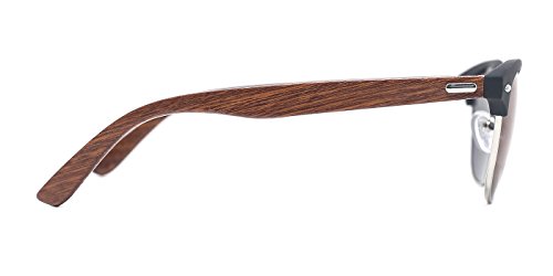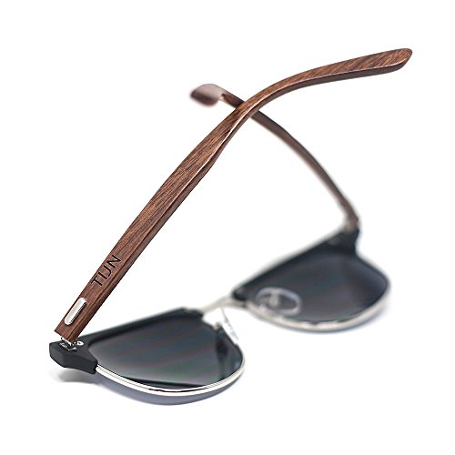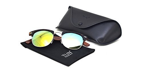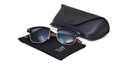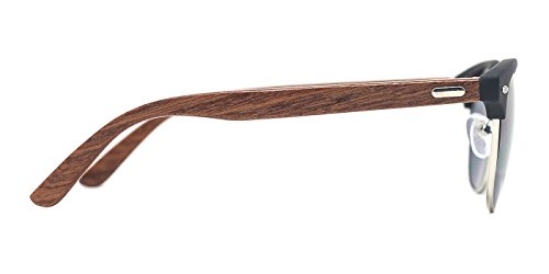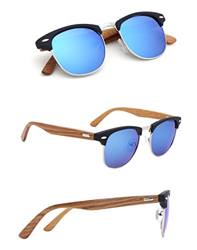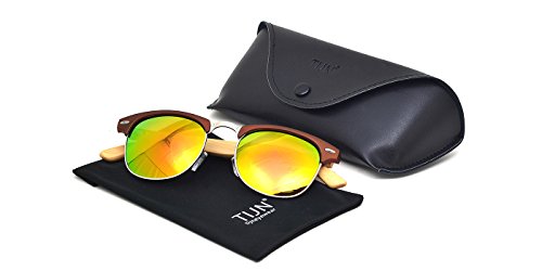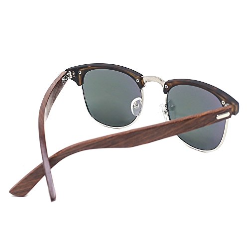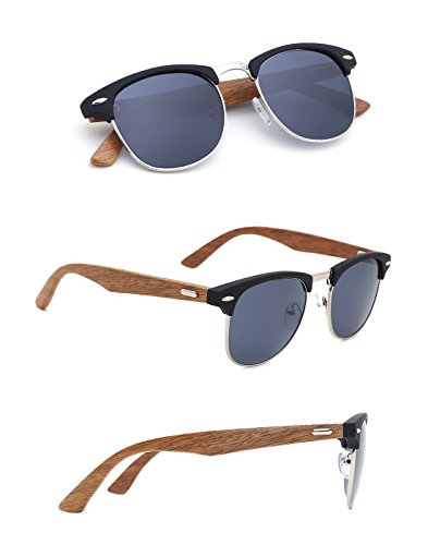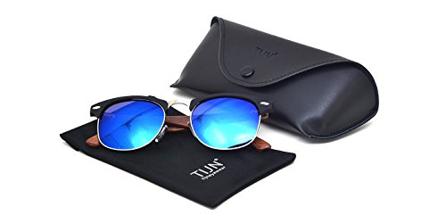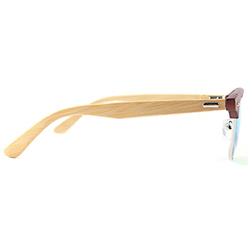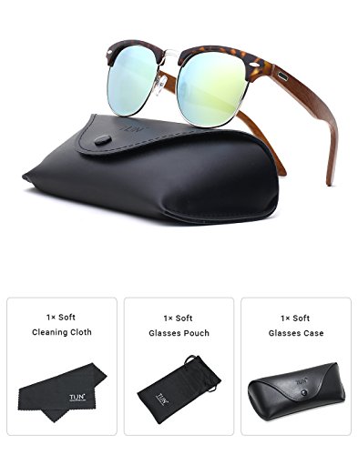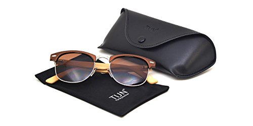 | TIJN Mens Bamboo Wooden Semi-Rimless Horn Rimmed Wayfarer Clubmaster Sunglasses |