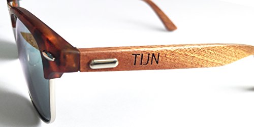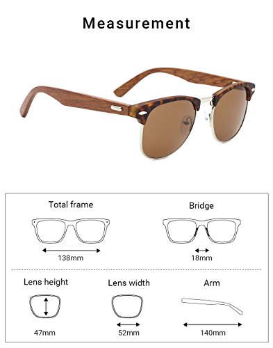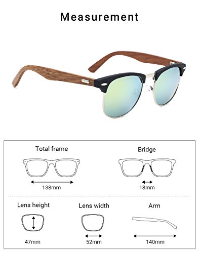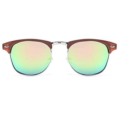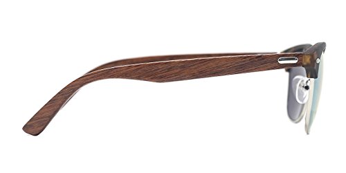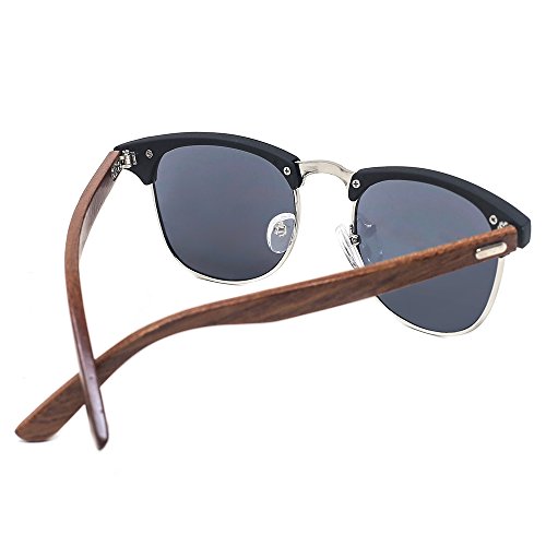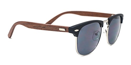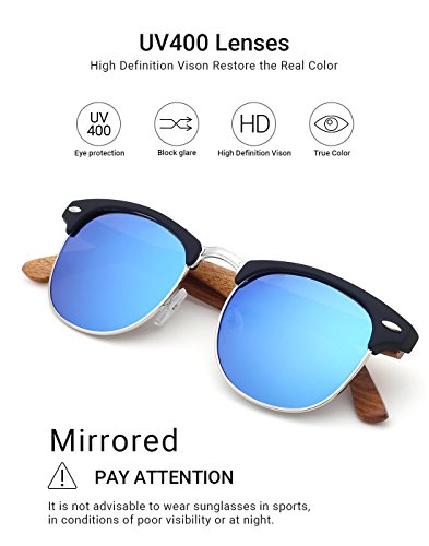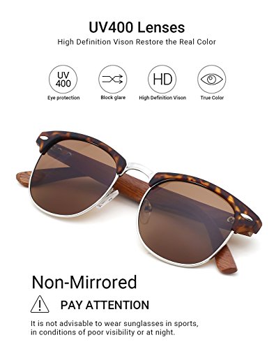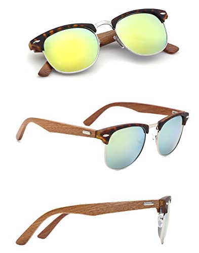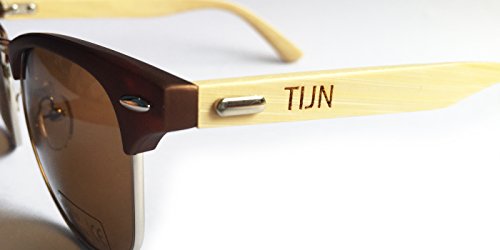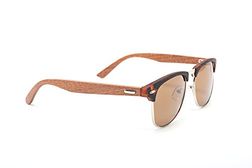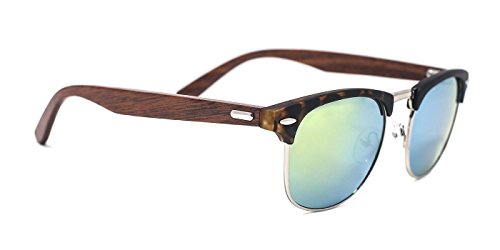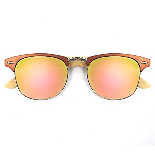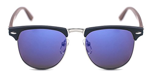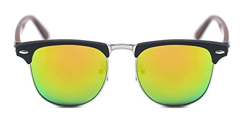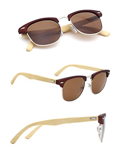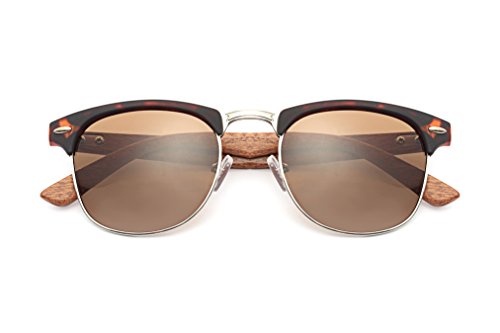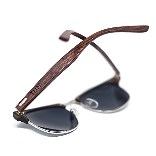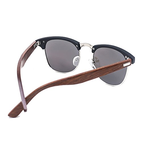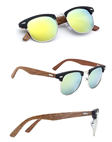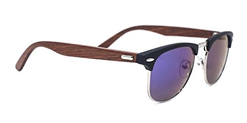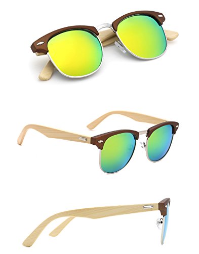 | TIJN Mens Bamboo Wooden Semi-Rimless Horn Rimmed Wayfarer Clubmaster Sunglasses |