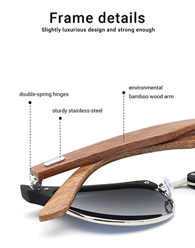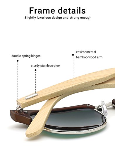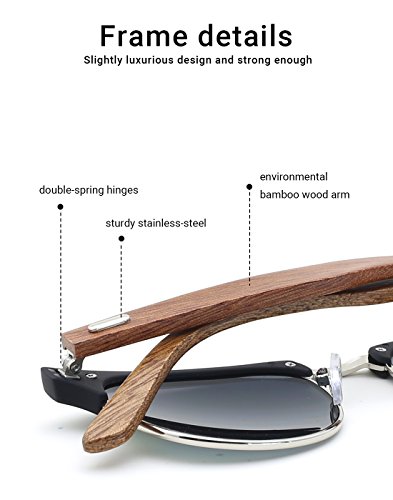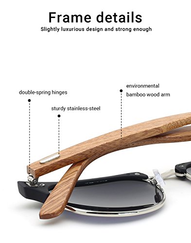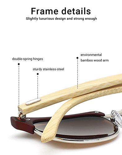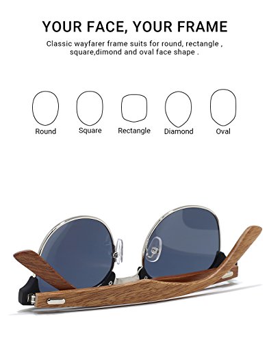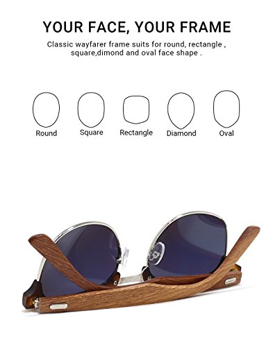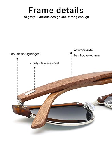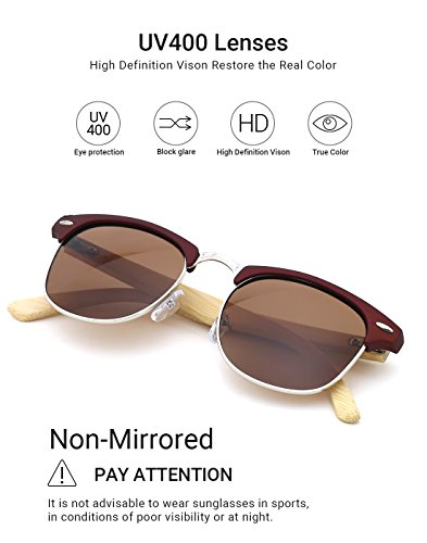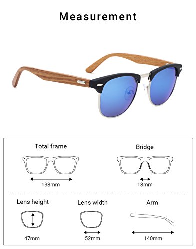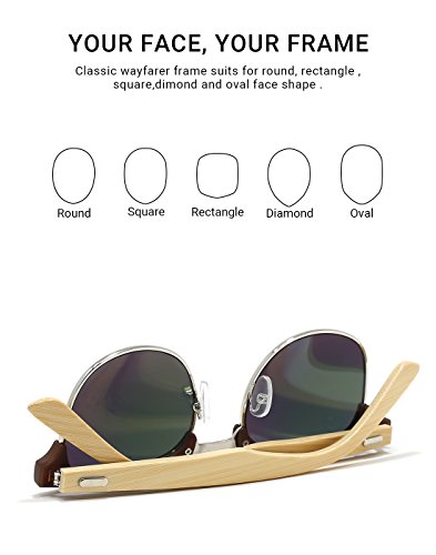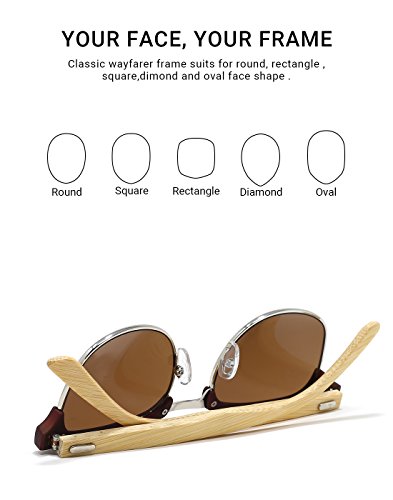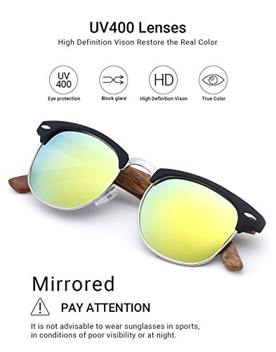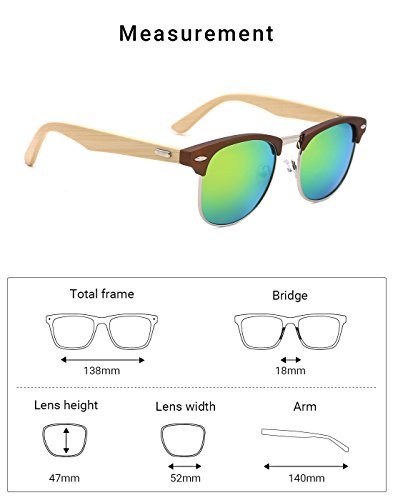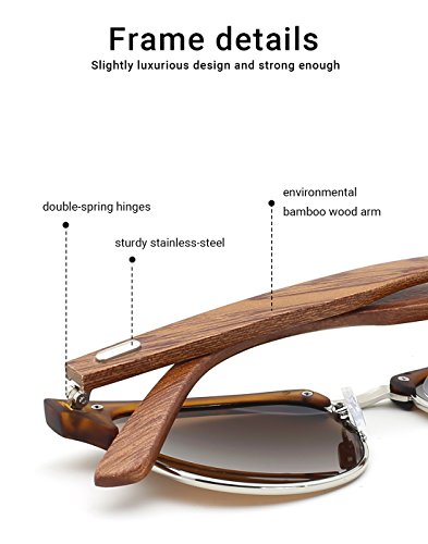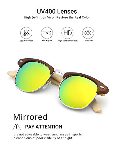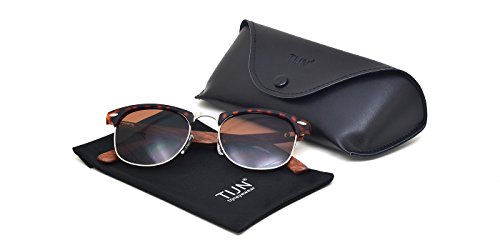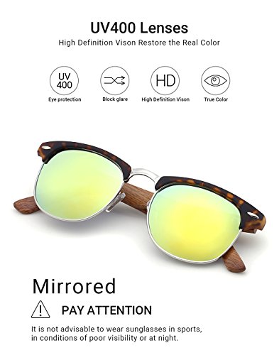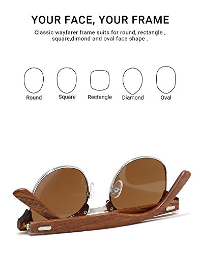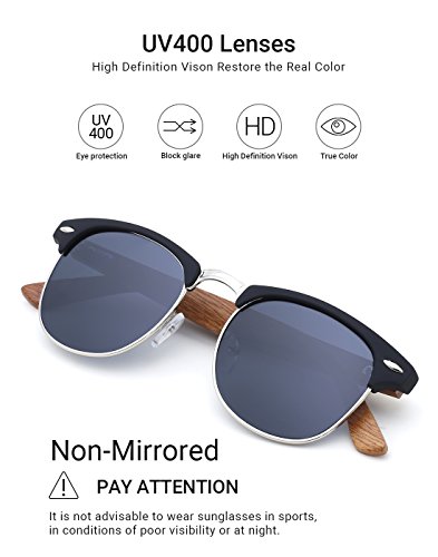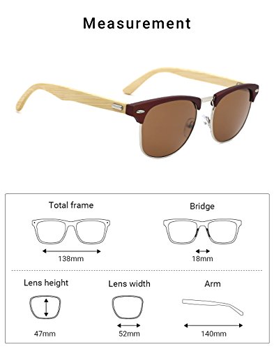 | TIJN Mens Bamboo Wooden Semi-Rimless Horn Rimmed Wayfarer Clubmaster Sunglasses |