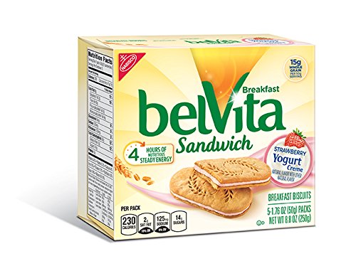 belVita Breakfast Sandwich, Strawberry Yogurt Crème, 5 Count Box, 8.8 Ounce (Pack of 6)