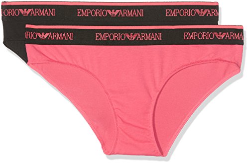 Emporio Armani Women's Iconic Logoband 2-Pack Brief, Cyclamin/Black, S