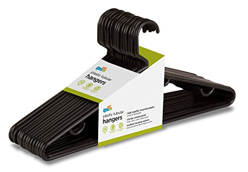 -. Feature : Pack of 60 lightweight black hangers made from recycled plastic / Recycled materials reduce environmental impact of production / Tubular design is strong yet light, weighing only 34 grams each / Straight silhouette maximizes closet space; includes built-in hooks / Available in black, red, and blue; limited lifetime warranty / Product Dimension : 11.81 in L x .15 in W x 5.31 in H