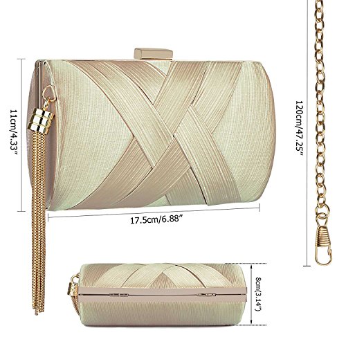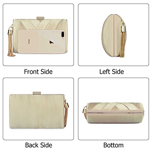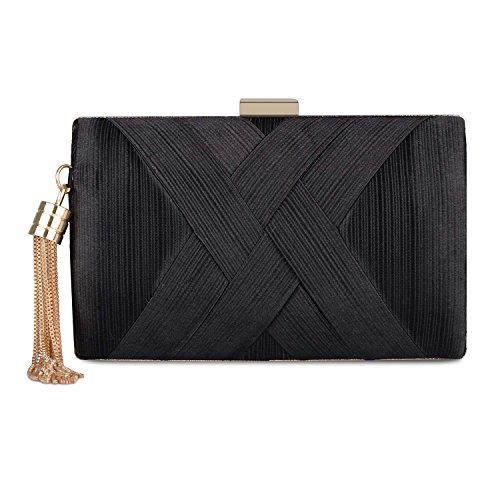 FEATURES: The evening bag is crafted by soft silk and satin, decorated with tassel on one side. It's available for 4 stylish that can be used as a clutches purse, handbag, shoulder bags or cross-body bags, (O-shaped chain wouldn't caught or pulled hair or dress). The simple and fashion evening clutch bag reveal your elegant and noble.