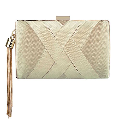 Women's Elegant Tassel Evening Clutch Bag Stain Fabric Clutch Purse for Bride Wedding Prom Night Out Party